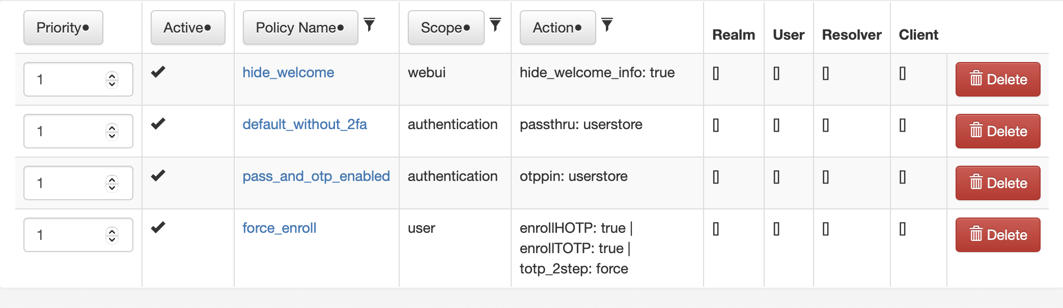 Problem is that last policy doesn’t work as I want. I want to force users to enroll TOTP/HOTP token when they first login into privacyIDEA’s WebUI